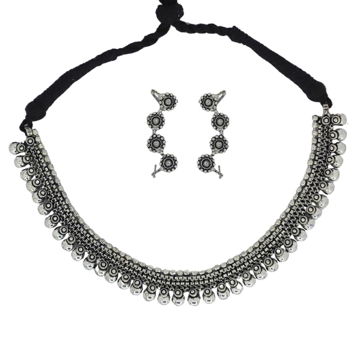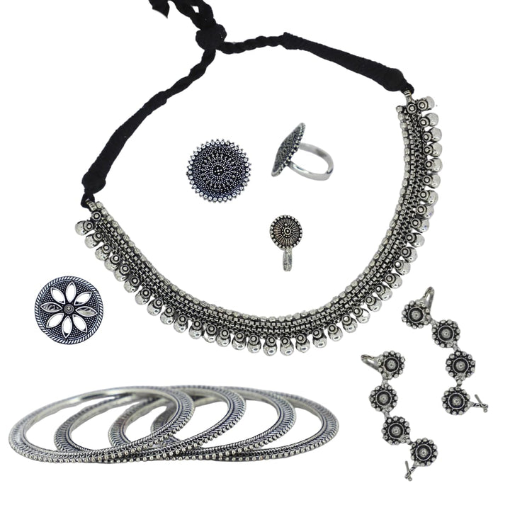 Antique Silver Oxidised Jewellery Set for Women & Girls | Necklace, Bangles, Earrings, Nose Pins & Rings Combo for Ethnic
