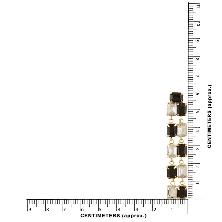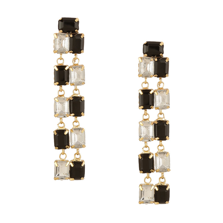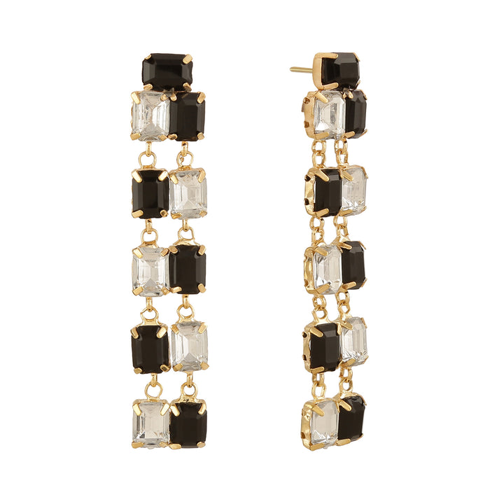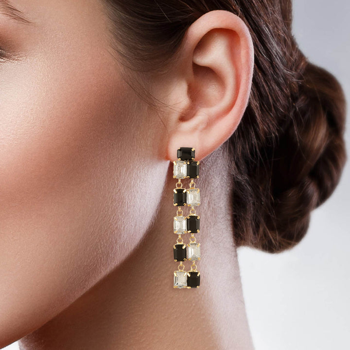 Stylish Cascading Design: Features alternating black and clear emerald-cut crystals for a bold, modern look.