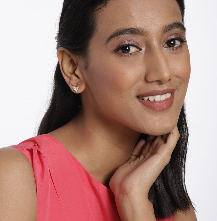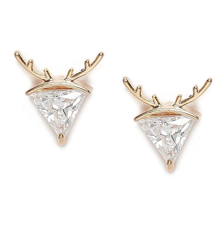 Add a whimsical touch of elegance to your jewelry collection with these deer antler diamond stud earrings. Featuring a unique triangular diamond set in a delicate gold antler design, these earrings blend nature-inspired charm with sophisticated sparkle. Perfect for adding a touch of individuality to any outfit, these earrings are both playful and stylish. Whether you're dressing up for a special occasion or looking to elevate your everyday look, these earrings are a versatile accessory that will make you stand out.
