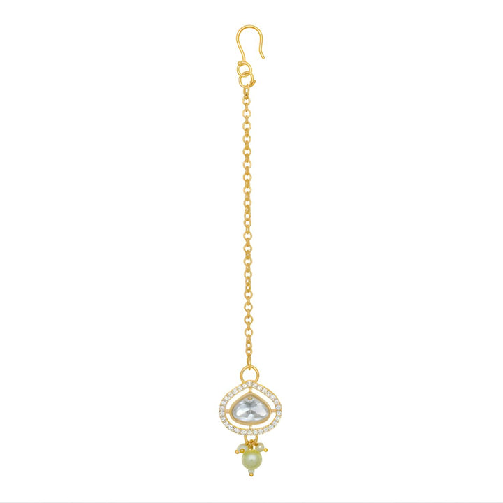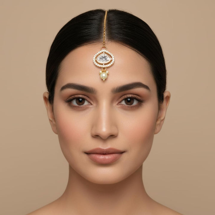 Gold Plated Kundan Maang Tikka for Women & Girls with Pearl Drop | Bridal & Festive Traditional Hair Accessory for Ethnic Wear