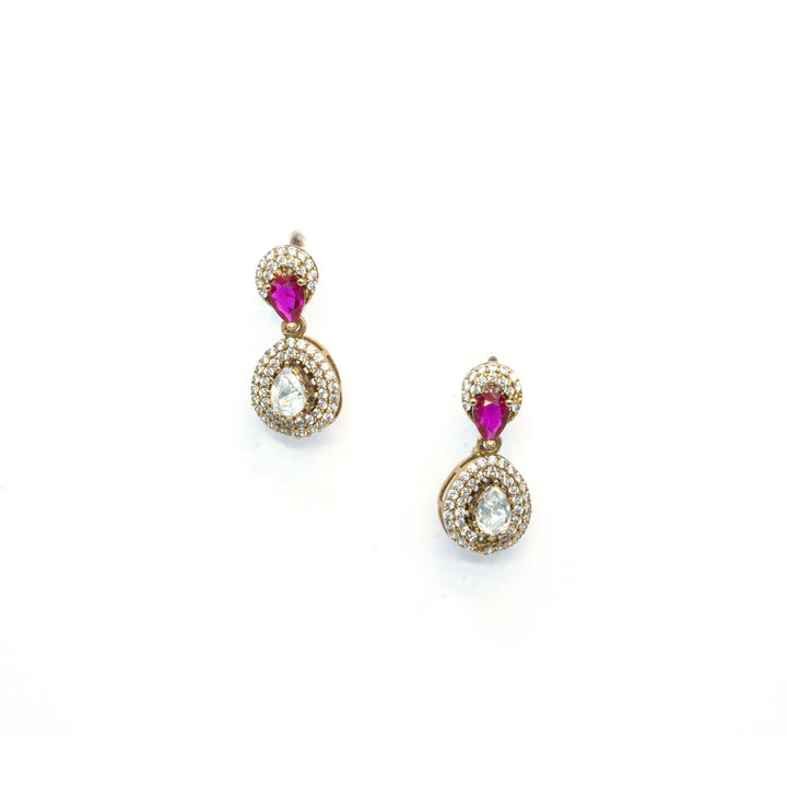 Gold-Plated Ruby & Zirconia Teardrop Bridal Necklace Set