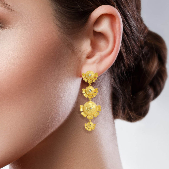 Gold Plated Traditional Ethnic Floral Dangler Earrings for W