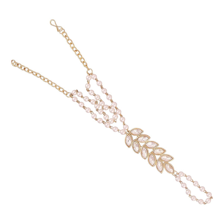 Gold-Toned Leaf Design Hand Harness with Pearl Accents
