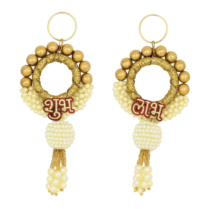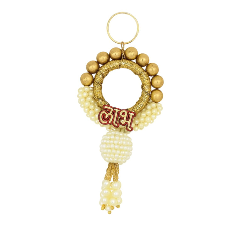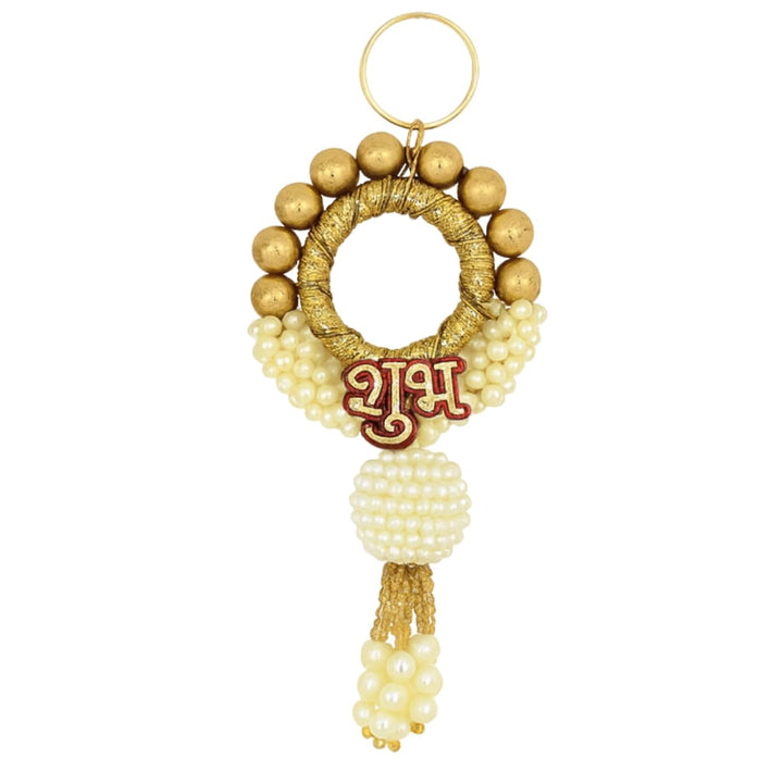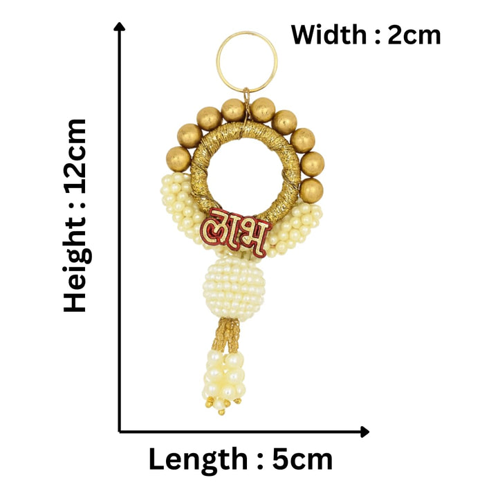 Golden & Pearl Shubh Labh Decorative Door Hanging Toran with Bead Design & Tassels, Traditional Wall Hanging for Diwali & Pooja Room Décor