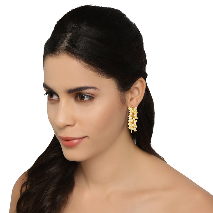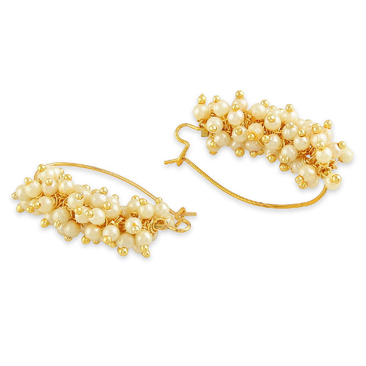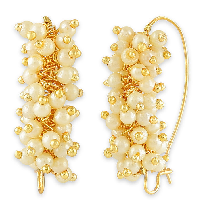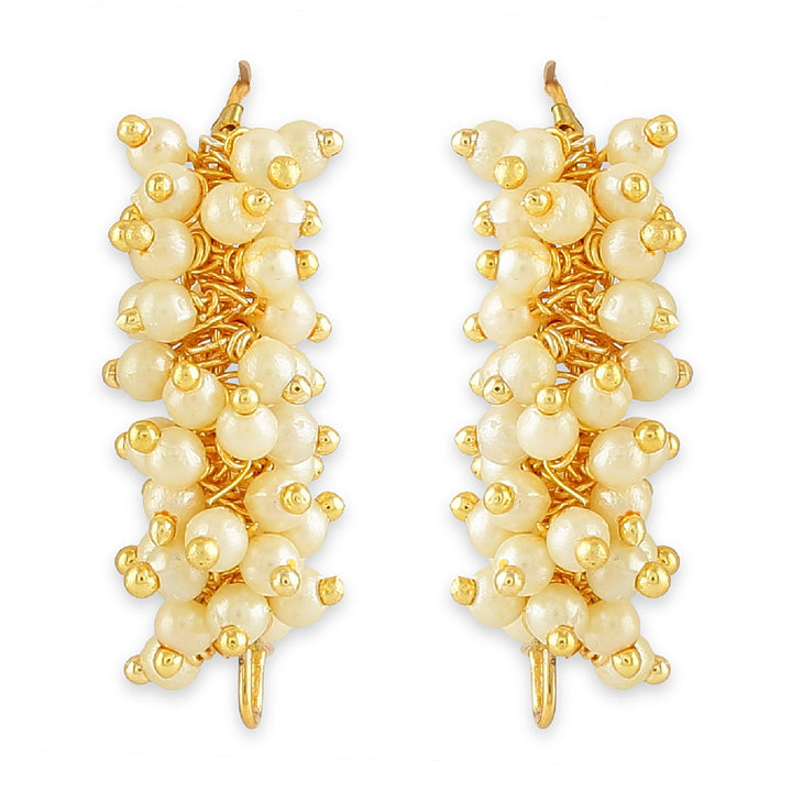 Exude elegance with these Handcrafted Gold & Pearl Cluster Earrings, designed to complement traditional and festive ensembles. Featuring lustrous pearl beads intricately woven into a gold-tone base, these earrings create a stunning cascading effect. The timeless blend of pearls and gold makes them a perfect accessory for weddings, cultural celebrations, and festive occasions. Lightweight yet bold, these earrings are a must-have for those who love classic, regal jewelry.