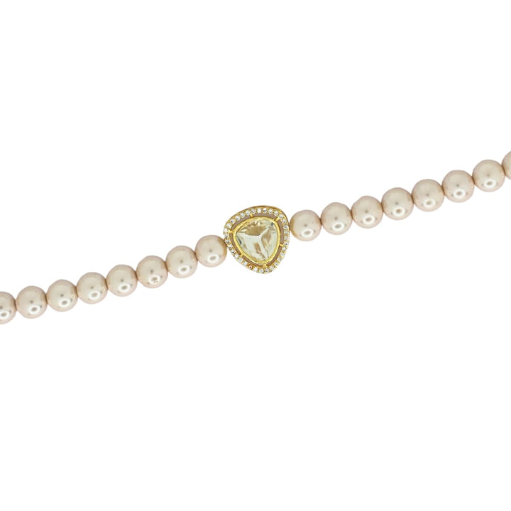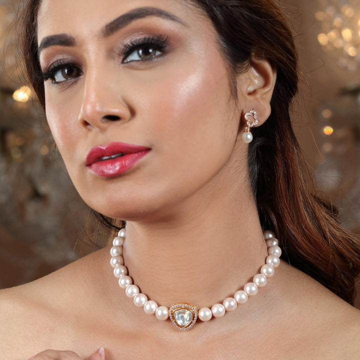 - Premium Design: Lustrous pearl beads with a gold-tone triangular Kundan pendant