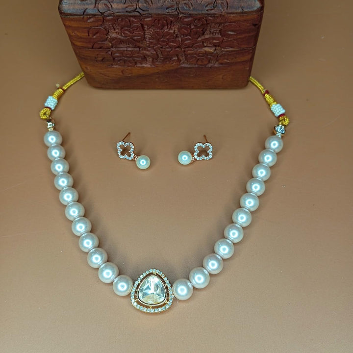 Iksava AAA Glass Double Coated Shining Pearl Beaded Necklace with Matching Earrings Set with Poli Kundan Charm Center Pendant with Adjustable String Dori Elegant Bridal & Festive Jewelry for Women & Girls(1Neklace With Earrings)