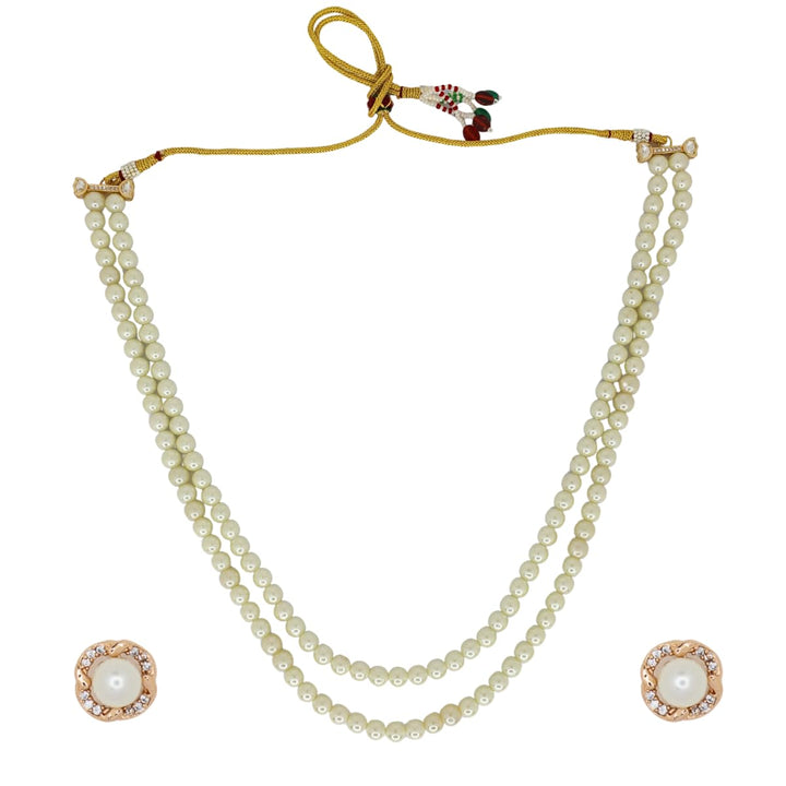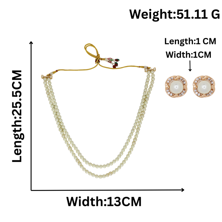 Bring timeless grace to your look with the Iksava Double Layer Pearl Beaded Necklace & Earrings Set. Featuring two strands of lustrous white pearls, this necklace exudes sophistication and pairs beautifully with both ethnic and Indo-western outfits. The set includes matching pearl stud earrings for a coordinated and classic finish. Designed with a golden adjustable dori, it ensures a comfortable fit for all neck sizes. Perfect for weddings, festive celebrations, formal gatherings, and everyday elegance, this lightweight jewelry set is a must-have addition to your collection.