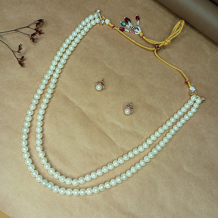 Iksava Double Layer Pearl Necklace with Earrings for Women & Girls