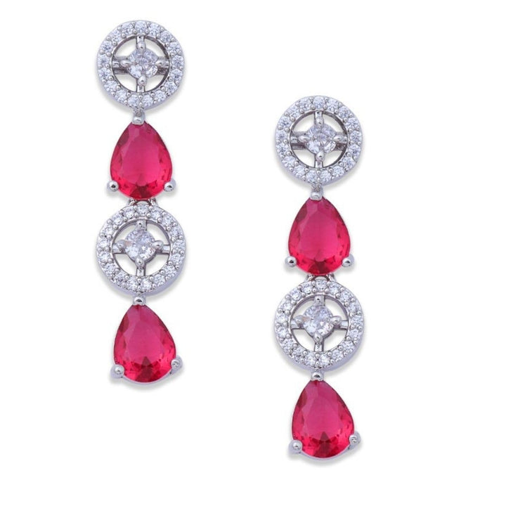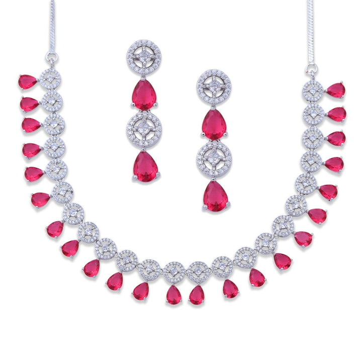 - Includes beautifully designed necklace and matching earrings. Easy to maintain, store, and carry, this Red Ruby & AD Jewelry Set is a must-have addition to every jewelry collection.