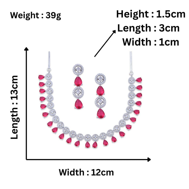 - Stunning Red Ruby stones combined with sparkling American Diamonds (CZ) create a luxurious necklace set with matching earrings, perfect for weddings, parties, and festive wear. Length: 13cm | Width: 12cm
