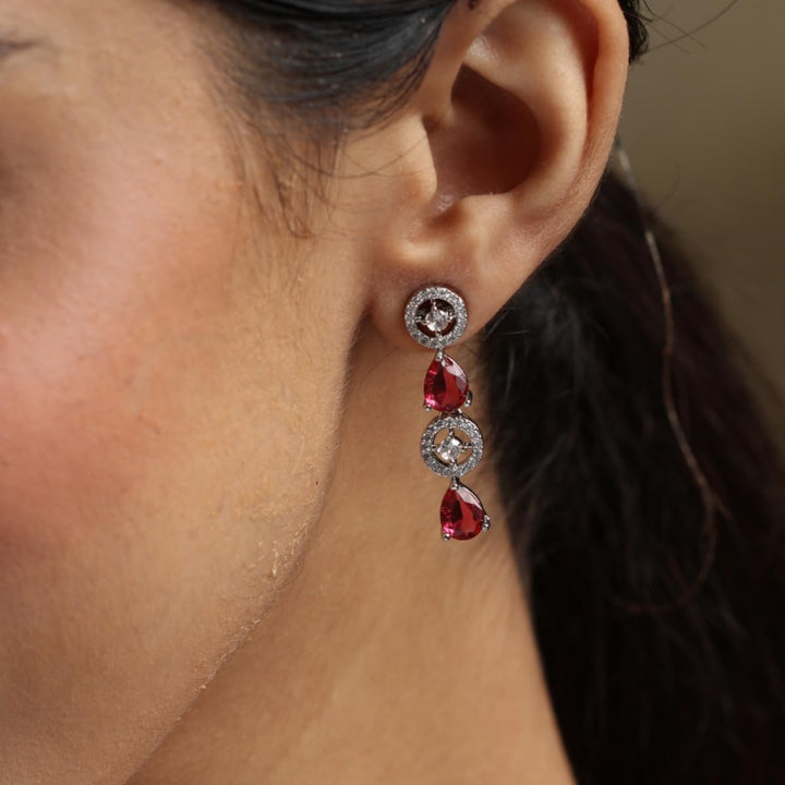 - Crafted with high-grade American Diamonds and ruby stones, finished with durable plating for long-lasting shine. Skin-friendly, lightweight, and comfortable to wear all day.