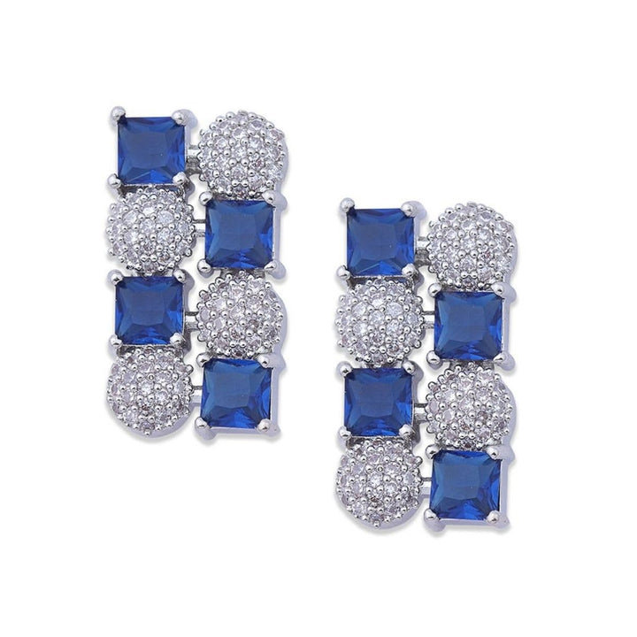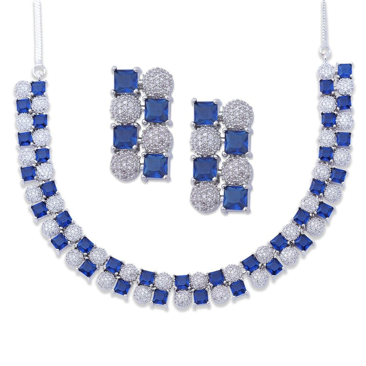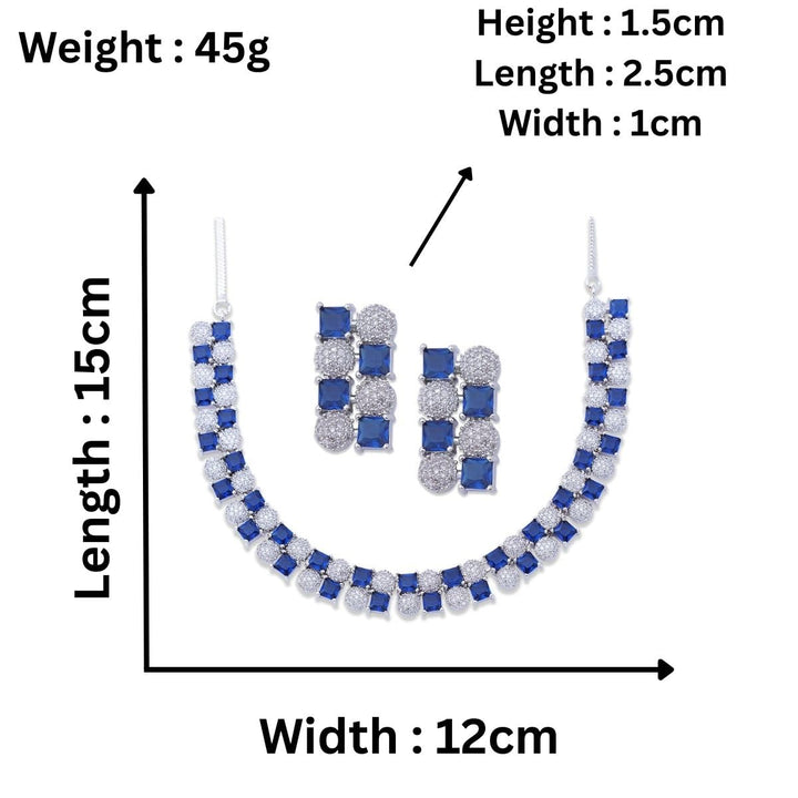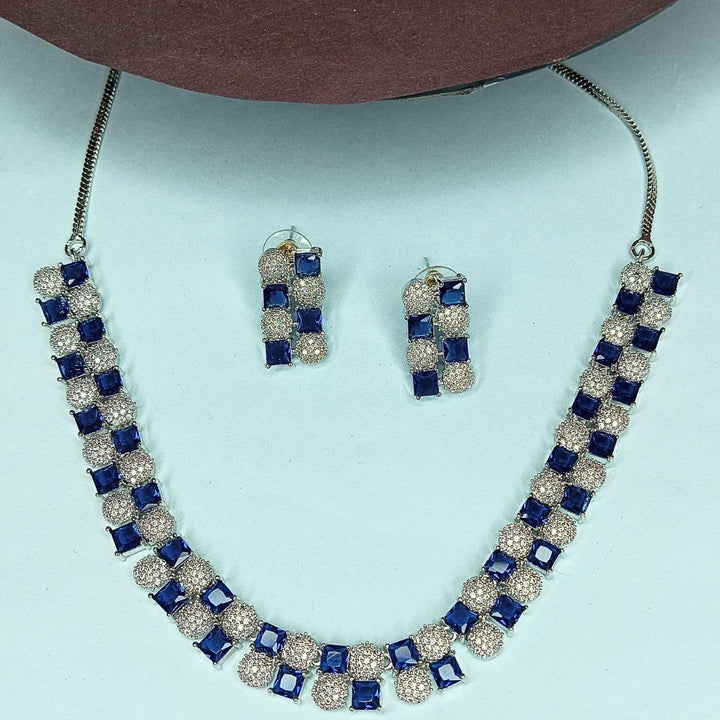 Iksava Silver Plated Blue Sapphire American Diamonds Studded Minimal Necklace Set with Earrings for Women