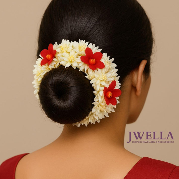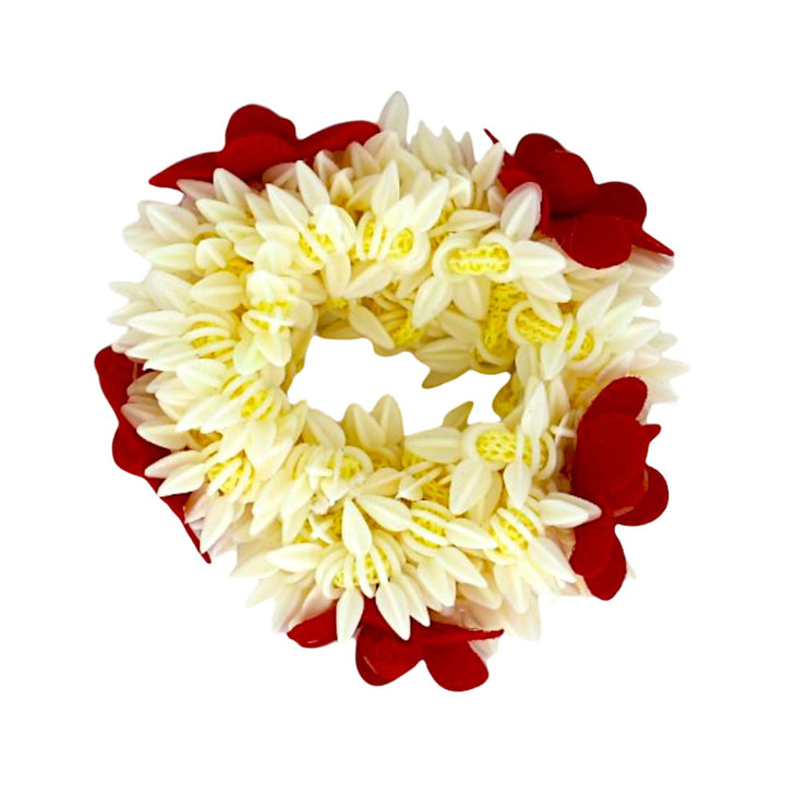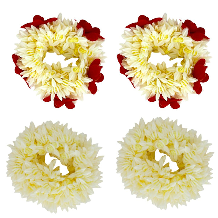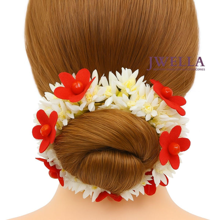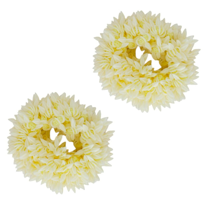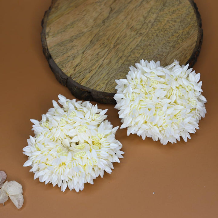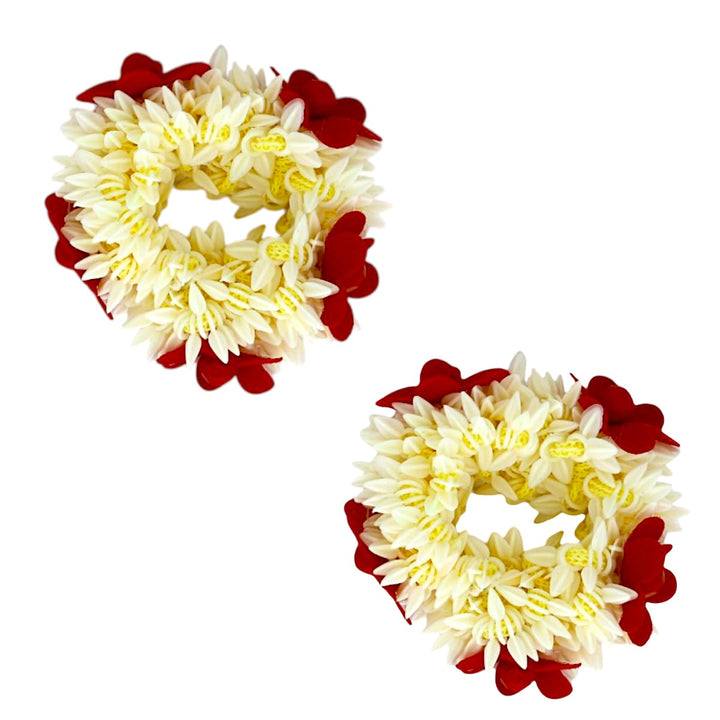 Add elegance and charm to your traditional look with this beautifully crafted set of 2 artificial white flower gajras, designed to elevate your bun hairstyle effortlessly. These floral hair accessories are made with high-quality synthetic fibers that closely resemble fresh jasmine or mogra flowers, offering a realistic appearance without any worry of wilting. Whether you're dressing up for a wedding, pooja, sangeet, classical dance performance, or any festive occasion, this gajra set is the perfect accessory to complete your ethnic ensemble. The soft and flexible construction ensures comfort and easy application—just wrap it around your hair bun or braid to instantly add a touch of tradition and femininity. Unlike natural flowers, these artificial gajras are reusable, lightweight, and easy to maintain. A thoughtful accessory for brides, bridesmaids, and traditional wear lovers, this set brings timeless grace and cultural charm into your personal styling. Pair it with silk sarees, lehengas, anarkalis, or fusion outfits to add an instant ethnic touch. A must-have in every woman’s hair accessory collection!