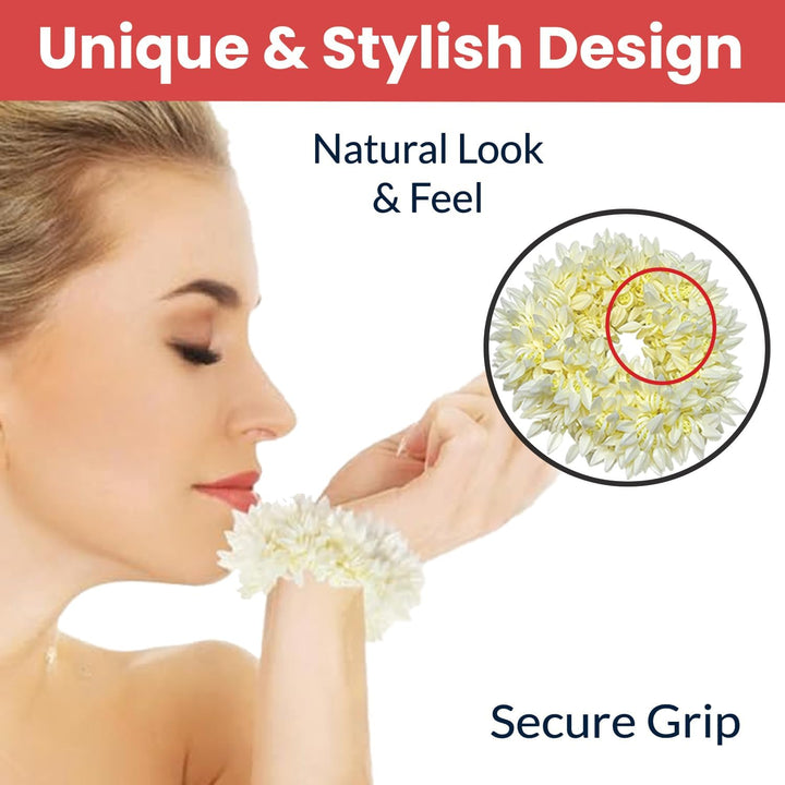 Artificial White Flower Gajra Hair Accessories for Women & Girls | Reusable Floral Juda Veni Gajra for Bun Hairstyle | Traditional Festive Gajra