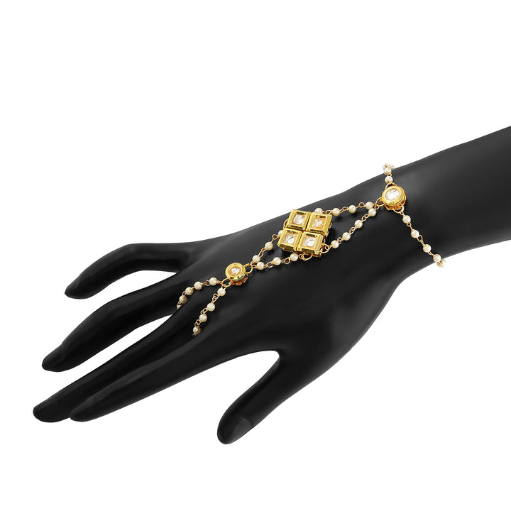 Kundan‑Pearl Hathphool Bracelet | Gold‑Plated Hand Harness Elegance