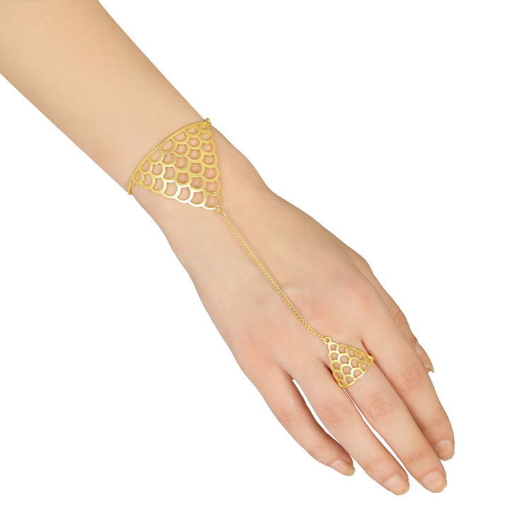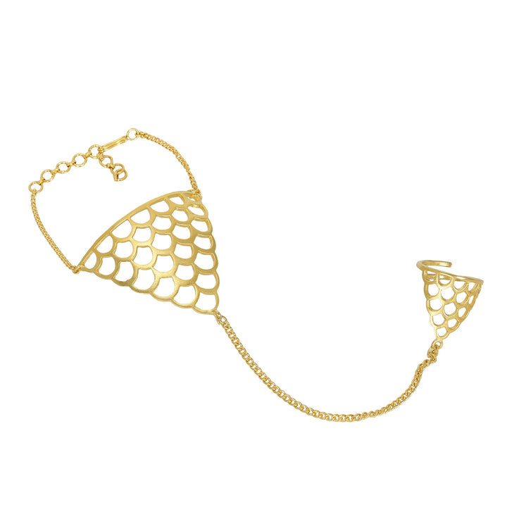 Matte Gold Plated Triangular Shape Haathphool with Ring for