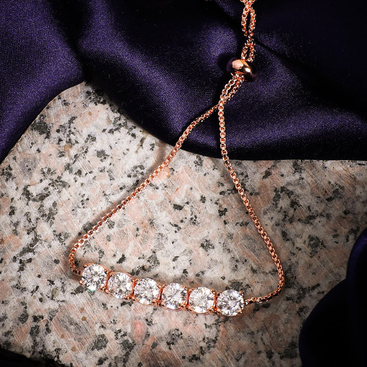 Rose‑Gold CZ Slider Bracelet | Adjustable 6‑Stone Tennis Sparkle