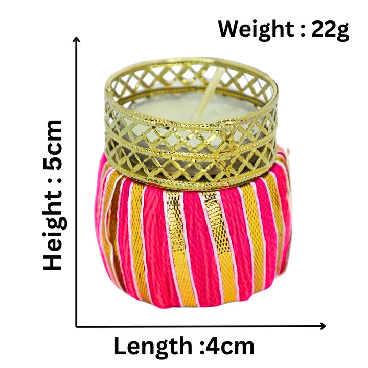 Celebrate the festive season with this Set of 6 Decorative Tealight Holders, featuring 5 Glow Lotus Candle Holders and 1 Pink Shine Glow Bangle Holder with tea light candles. The lotus holders are crafted with golden metal and bright pink lotus motifs, symbolizing purity and positivity, while the bangle holder is designed with vibrant pink and golden threadwork for a modern festive charm. Together, they create a warm and glowing ambiance perfect for Diwali, Navratri, Karwa Chauth, Christmas, weddings, housewarmings, and pooja rituals. These tealight holders are lightweight, durable, reusable, and easy to maintain, making them ideal for repeated use. Place them on rangoli designs, pooja thalis, mandirs, entryways, or dining table setups to enhance your décor. This set also makes a thoughtful and festive gift for family and friends on special occasions. Add elegance and brightness to your celebrations with this versatile tealight combo set.