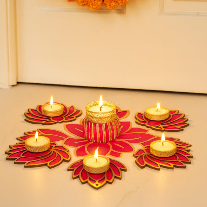 - Includes tea light candles for a ready-to-use décor setup.Perfect for Diwali, Navratri, Karwa Chauth, weddings & pooja rituals