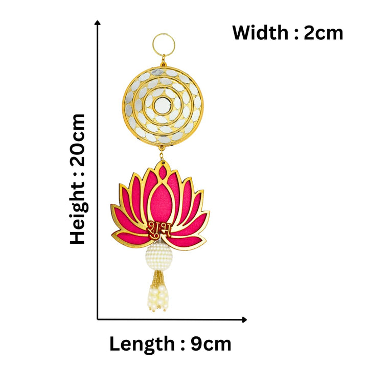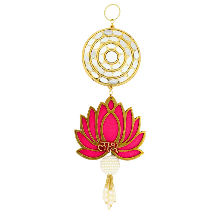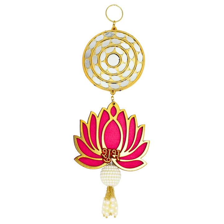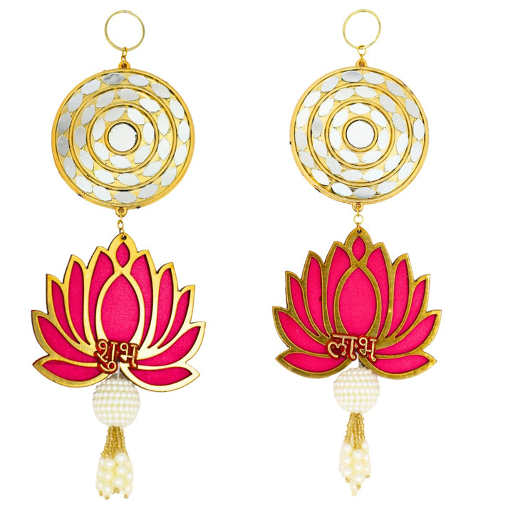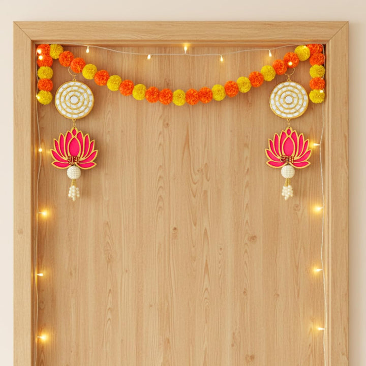 Shubh Labh Lotus Door Hanging Toran with Golden Circular Design & Pearl Tassels, Traditional Wall Hanging for Diwali & Festive Home Décor