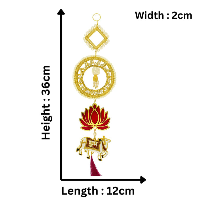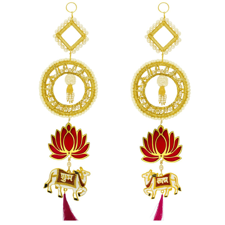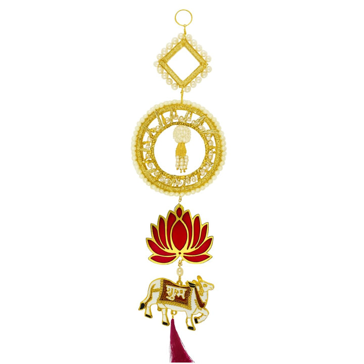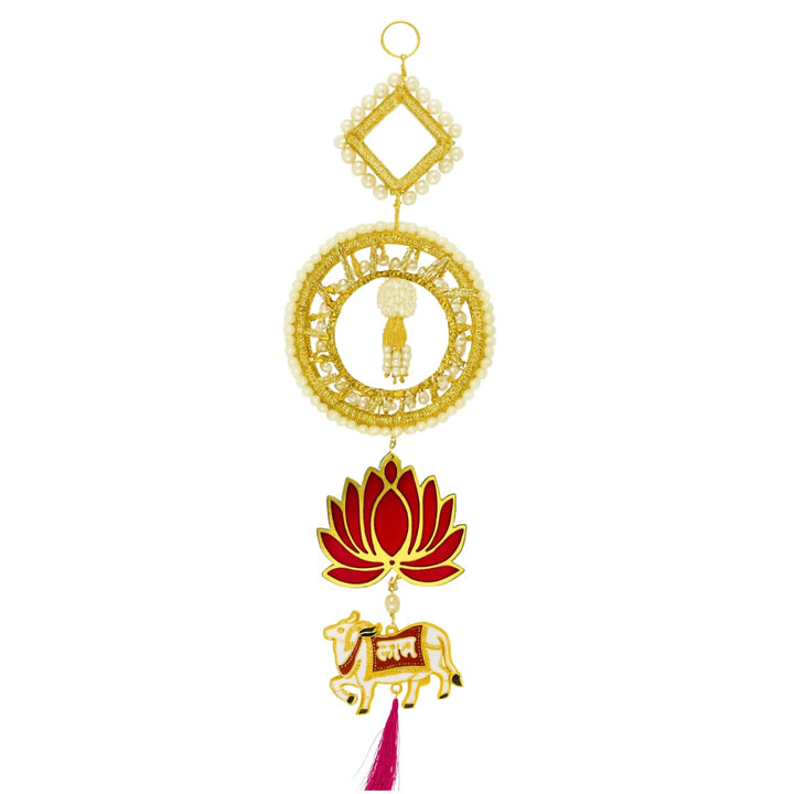 Shubh Labh Toran with Pearl, Lotus & Cow Motifs, Decorative Multi-Layer Door Hanging with Tassels for Diwali, Wedding & Festive Wall Décor