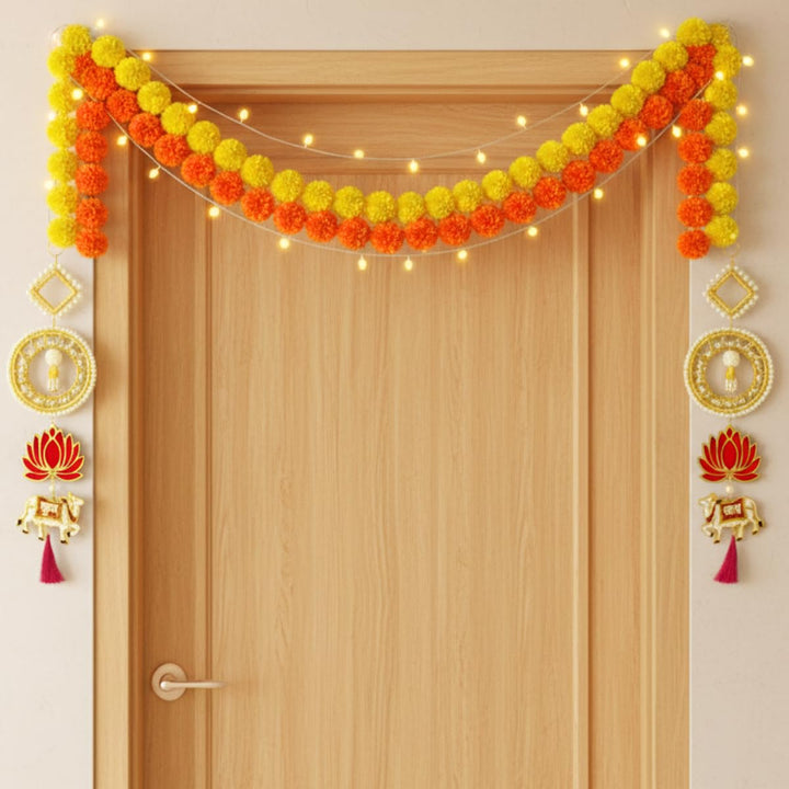 - Multi-Layer Premium Design – Features pearl, circular, lotus, and cow motifs in one toran.