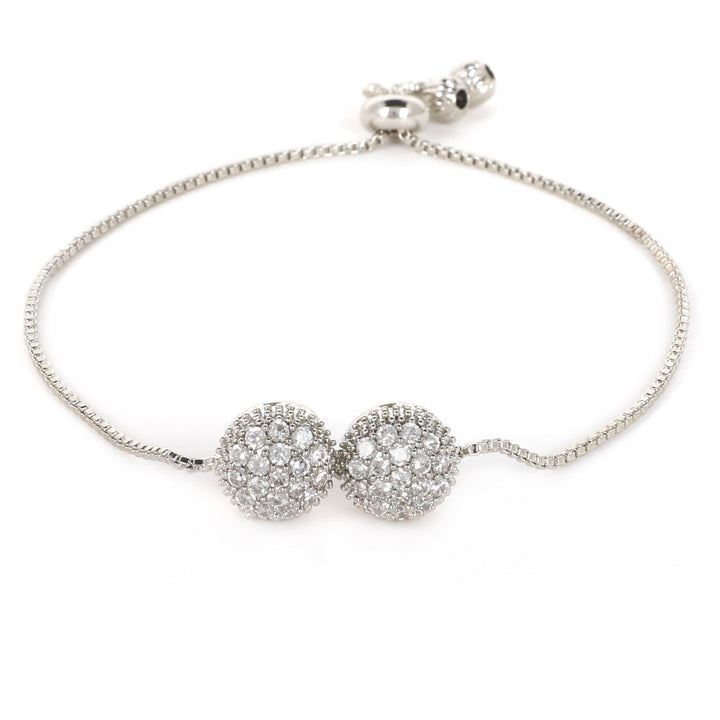 Elevate your everyday style with this sleek silver adjustable bracelet featuring two shimmering crystal ball charms. The delicate chain and smooth adjustable clasp make it a perfect blend of elegance and comfort — whether you're dressing up for an event or adding subtle sparkle to your daily look.