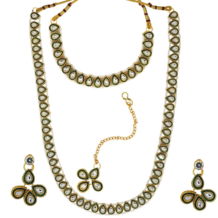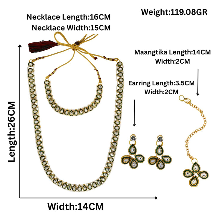Traditional Boond Shape Green Kundan Necklace Set with Earrings & Maang Tikka for Women | Wedding & Festive Jewellery
